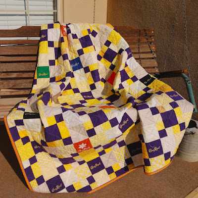 Melva of Melva Loves Scraps finished her Crown Royal quilt. She made a two-colour flange binding for it. . Check out her post for details.
